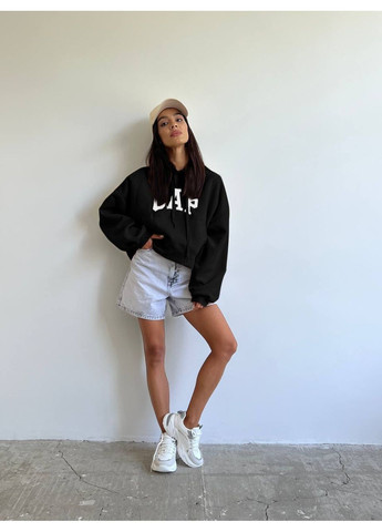 🔹 Худи – укороченное, на молнии, с капюшоном и эластичными манжетами. Украшен брендовым логотипом для стильного акцента.