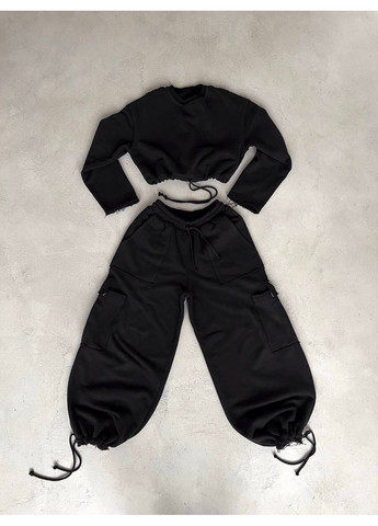 🔹 Брюки – комфортного свободного кроя, с эластичным поясом на резинке и манжетами внизу. Логотип на штанине добавляет спортивный шарм.