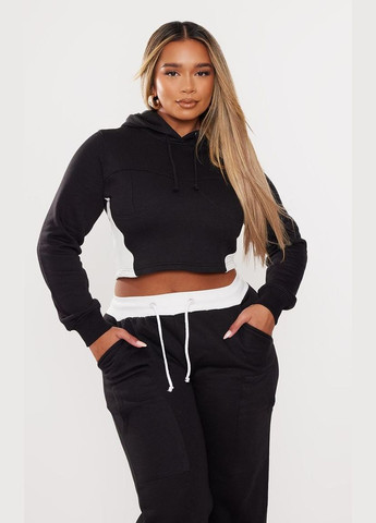 Укороченная толстовка с капюшоном с контрастными швами
