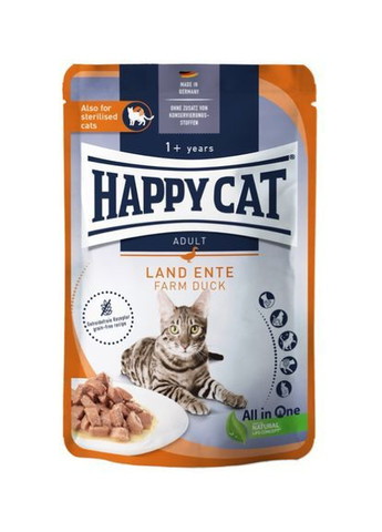 Влажный корм Happy Cat Culinary Land Ente – это высококачественный беззерновой корм для взрослых кошек. Влажный корм вносит важный вклад в регуляцию баланса жидкости, а следовательно, поддерживает здоровье мочевыводящих путей. Вкусный рецепт с более чем 90 процентами животного белка в общем белке произведен в соответствии с концепцией Natural Life® и приносит пользу в пяти важных сферах здоровья кошек. Концепция «все в одном» со всеми важными витаминами и минералами также делает ненужными дополнительные пищевые добавки. •беззерновой рецепт •инновационная формула активных ингредиентов •поддерживает мочевыводящие пути •высокая доля животных белков •натуральные ингредиенты •подходит для стерилизованных