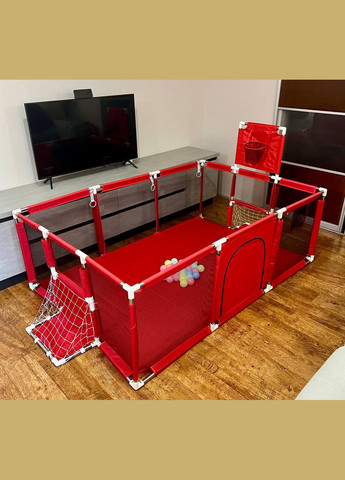 Большой игровой манеж детский напольный размером 230 (с воротами) х 122 х 65 см для маленьких и больших детей с баскетбольным кольцом и футбольными воротами - это идеальное решение для родителей. Сетка позволяет маме видеть игру ребенка, обеспечивая максимальную безопасность. Надежный каркас и уникальный утолщенный полиэтиленовый материал, из которого изготовлено ограждение для детей, обладает удивительными свойствами. С его помощью детская площадка для улицы дачи и большой комнаты дома становится эластичной, мягкой и устойчивой к давлению. Такой материал не только долговечен, но и мягко поддерживает растущее тельце малыша, обеспечивая комфортное окружение для игр и отдыха. Благодаря прекрасной эластичности, манеж для новорожденных легко складывается и раскладывается. Это позволяет удобно передвигать забор для детей на пол по комнате или брать с собой в поездку. Компактный размер в сложенном виде не займет много места и удобно уберется в любом уголке вашего дома. Детский манеж складной является не только безопасным местом для игр, но и отличным способом развития ребенка. В нем малыш может учиться самостоятельно садиться, стоять и ходить развивая моторику и играя в баскетбол и футбол, благодаря кольцу и воротам. Докупив и наполнив манеж пластиковыми шариками, его легко можно превратить в сухой бассейн. Необходимость постоянного присмотра ребенка уже не проблема: мама может видеть каждый шаг, каждую улыбку и смех своего ребенка из любого уголка в этой перегородке. Уверенность и покой - вот что дает барьер для ребенка. Это не просто заграждение, а уютный домик для чада. Доверьте безопасность и развитие малыша надежному партнеру. Домашние товары для малыша идеально сочетают комфорт, безопасность и функциональность, что делает каркасный манеж игровой незаменимым помощником в воспитании ребенка. Не упустите возможность сделать его игру яркой и захватывающей, а себе - более свободный и уверенный взгляд на маленького человека, который становится больше и сильнее каждый день