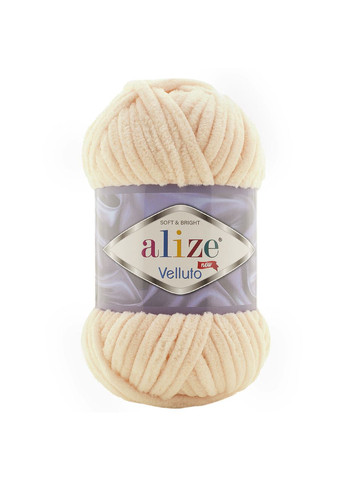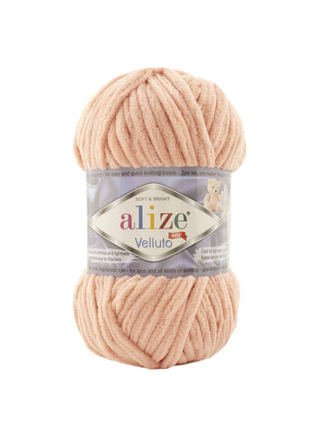 Толстая фантазийная плюшевая пряжа Alize Velluto (Ализе Веллуто). Состав: 100% микрополиэстер. Вес мотка: 100 грамм. Примерная длина — 68 метров. Толщина нити — 0,8 см. Производитель: Alize, Турция. Цена указана за 1 моток. Рекомендуемый размер спиц: 8–9 мм. Рекомендуемый размер крючка: 8–10 мм. Пряжа Alize Velluto — это объёмная, очень мягкая плюшевая полиэстеровая нить для вязания, похожая на бархат. Имеет плотную и чрезвычайно приятную на ощупь структуру. Изделия из неё получаются тёплыми, мягкими и пушистыми. Пряжа отлично держит форму в изделиях и подходит для вязания больших игрушек и элементов интерьера. Использование: Толстую плюшевую пряжу Ализе Веллуто используют для вязания одеял, декоративных подушек, пледов, объёмной одежды и головных уборов, а также мягких плюшевых игрушек (в частности амигуруми). Идеальна для вязания толстыми спицами или крючком как для начинающих, так и для опытных мастеров.