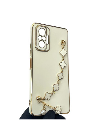 Чехол для телефона Xiaomi Redmi Note 10 Pro 4G женский с ремешком и украшениями и золотой окантовкой на сяоми редми нот 10 про 4г белый Премиальный чехол с изысканной золотой окантовкой и элегантным декоративным ремешком на руку — стильное сочетание защиты и ювелирного дизайна. Украшен подвесками в форме клеверов, жемчужиной и металлическими элементами, которые придают образу уникальность. Изготовлен из прочного и гибкого TPU, он обеспечивает отличную защиту от ударов, царапин и сколов, не утяжеляя смартфон. Чехол плотно прилегает к корпусу и поддерживает беспроводную зарядку. Идеальный вариант в качестве подарка для женщины — подойдёт для девушки, подруги, жены, мамы или сестры. Отлично смотрится в праздничной упаковке и будет уместен на 8 марта, День рождения, День святого Валентина, Новый год и другие праздники. Характеристики: Материал: термополиуретан (TPU) Декор: съёмный ремешок с подвесками (металл + акрил) Назначение: защита задней панели и боковых граней Поддерживает беспроводную зарядку: Особенности: не скользит в руке, удобно держать за ремешок