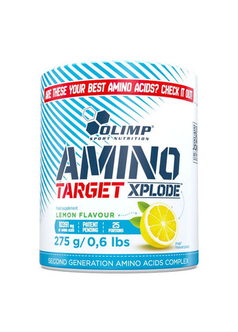 Olimp Amino Target Xplode - содержит высококачественные аминокислоты, полученные из гидролизата говяжьего протеина, с добавлением свободных аминокислот и EAA.Olimp сделали профиль аминокислот, максимально похожий на профиль мышечной клетки человека. Такое решение предназначено для обеспечения надлежащего протекания энергетических и биохимических процессов во время упражнений, что, в свою очередь, может способствовать отсрочке мышечной усталости и утомления на уровне мозга.Как принимать:Принимать 2 порции в день: перед завтраком или тренировкой и после тренировки. 1 порция также может использоваться один раз в день во время еды в качестве дополнения к диете. Добавьте 1 порцию (11 г порошка = 1 мерная ложка) в 250 мл воды. Употребляйте сразу после приготовления.Содержание элементов в 1й порции11 грамм, Калории 44 ккал, Жир , - насыщенные , Углеводы , - сахар , Белок 10 г, Соль 0,01 г, , Аминокислотный профиль, L-аланин 1266 мг, L-аргинин 148 мг, L-аспарагин 106 мг, L-валин 193 мг, L-гистидин 14 мг, Глицин 441 мг, L-глутамин 6232 мг, L-изолейцин 108 мг, L-лейцин 57 мг, L-лизин 269 ​​мг, L-метионин 91 мг, L-орнитин 150 мг, L-пролин 455 мг, L-серин 63 мг, Таурин 625 мг, L-тирозин 17 мг, L-треонин 115 мг, L-триптофан 2 мг, L-фенилаланин 38 мг, L-цистеин 1 мг, , Ингредиенты, L-глутамин, гидролизат говяжьего протеина, L-аланин, таурин, регулятор кислотности - лимонная кислота; L-орнитин-L-аспартат, L-лизина гидрохлорид, L-валин, L-изолейцин, L-треонин, L-метионин, L-триптофан, ароматизаторы, подсластители - сукралоза, ацесульфам K; цвет - рибофлавины.