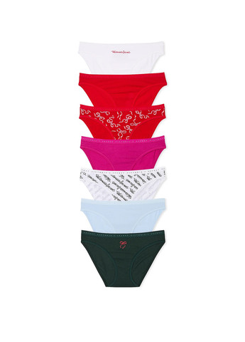 Набор трусиков Victoria’s Secret. Преобразите свой ящик для нижнего белья с помощью этих трусиков. Мягкая, эластичная ткань адаптируется к вашим изгибам, обеспечивая непревзойденную посадку и оставаясь незамеченной под одеждой. Набор трусиков из разных цветов с праздничными принтами, резинка с логотипом бренда. Эластичная резинка с логотипом бренда. Отличное качество.