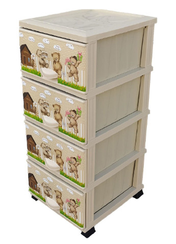 Пластиковый комод для хранения детских игрушек, одежды, постельных принадлежностей и других нужных вещей, изготовлен из прочного пластика. Удобный и практичный комод помогает сохранять порядок в доме и добавит изюминку в ваш интерьер. Также вместительные ящики, помогут держать вещи в порядке: в прихожей, в спальне, в ванной комнате, в гостиной или там где вам удобно.Цвет изделия может отличаться от цвета на картинке. Уточняйте у менеджера.Характеристики: - Длина (боковая часть) - 45 см - Ширина (фасад, передняя и задняя часть - 37,5 см - Высота - 90 см- Количество выдвижных ящиков - 4- Тип опор - ножки- Материал изготовления комода - пластик - Ширина комода - 45.5 см - Глубина комода - 37.5 см- Высота комода - 90 см