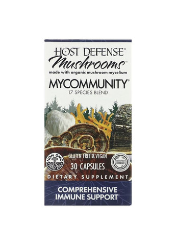 Свойства продукта: ослабленнм иммунитете Способствует укреплению иммунитета в период сезонных заболеваний Помогает справиться со стрессом Поддерживает высокий уровень энергии и жизненного тонуса Способствует укреплению сердечно-сосудистой системы Показания к применению В качестве пищевой добавки принимайте по 2 капсулы один раз в день. Можно принимать во время еды или без нее, натощак или по рекомендации врача. Что это? Данный комплекс разработан специально для поддержки иммунитета. Он содержит мицелии 17 грибов и помогает поддерживать иммунную систему, препятствует появлению и развитию не здоровых клеток, уменьшает риск развития серьезных заболеваний в организме. Эти растительные компоненты помогут организму справиться с вирусами и повысить защитный барьер вашего организма. Как это работает? Органические грибы, лежащие в основе данной формулы, обладают очень хорошей антиоксидантной активностью, защищают организм от воспалительных процессов в крови, повышая тем самым сопротивляемость иммунной системы к различным вирусам и инфекциям. Комплекс активизирует иммунную систему, улучшает работу нервной системы, снижает уровень вредного холестерина, избавляет от токсинов и нормализирует работу сердца. Этот пищевой продукт, получаемый из мицелий грибов, содержит полный спектр компонентов, включая пребиотики для микробиома - это полисахариды (бета-глюканы, арабиноксиланы, глюкоза, ксилоза, галактоза и кордицепиновая кислота), гликопротеины, эргостерины, тритерпеноиды и другие миконутриенты, которые так необходимы нашему организму для поддержки естественного иммунитета. Элемент Вес Единица Процент Порция 2 капсулы Порций в упаковке 30 Калории 5 Всего углеводов <1 г <1%♢ Мицелий чаги (Inonotus obliquus)‡/биомасса риса‡ 148 мг † Мицелий Майтаке (Grifola frondosa)‡/биомасса риса‡ 142 мг † Мицелий рейши (Ganoderma lucidum sI)‡/биомасса риса‡ 110 мг † Мицелий кордицепса (Cordyceps militaris)‡/биомасса риса‡ 100 мг † Мицелий Royal Sun Blazei (Agaricus brasiliensis f. blazei)‡/биомасса риса‡ 80 мг † Мицелий энокитаке (Flammulina velutipes)‡/биомасса риса‡ 80 мг † Мицелий Mesima (Phellinus linteus)‡/биомасса риса‡ 76 мг † Мицелий Ежовика (Hericium erinaceus)‡/биомасса риса‡ 64 мг † Мицелий Трутовика разноцветного (Trametes versicolor)‡/биомасса риса‡ 48 мг † Мицелий вешенки (Pleurotus ostreatus)‡/биомасса риса‡ 48 мг † Мицелий Artist's Conk (Ganoderma applanatum)‡/биомасса риса‡ 30 мг † Мицелий орегонской ганодермы (Ganoderma oregonense)‡/биомасса риса‡ 30 мг † Мицелий агарикона (Fomitopsis officinalis)‡/биомасса риса‡ 30 мг † Мицелий Амаду (Fomes fomentarius)‡/биомасса риса‡ 20 мг † Мицелий шиитаке (Lentinula edodes)‡/биомасса риса‡ 20 мг † Мицелий березового трутовика (Piptoporus betulinus)‡/биомасса риса‡ 12 мг † Мицелий расщепленного жаберного полипора (Schizophyllum commune)‡/биомасса риса‡ 12 мг † ♢Процентная дневная норма основана на диете в 2000 калорий. †Суточная доза не определена. ‡Сертифицированный органический продукт