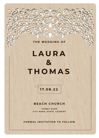 "Уникальное приглашение на свадьбу из дерева: добавьте волшебство к вашему особенному дню! Ищете нечто особенное и неповторимое для вашего свадебного приглашения? Наша коллекция пригласительных из дерева - это идеальное сочетание элегантности, теплоты и природной привлекательности. Особенности продукта: Натуральные материалы: Каждое приглашение изготовлено из высококачественного дерева, добавляя теплоту и оригинальность вашему приглашению. Экологически чисто: Наша продукция изготовлена с учетом экологических принципов, что делает ее отличным выбором для тех, кто ценит природу. Индивидуальный дизайн: Возможность выбора уникального дизайна и персонализации, чтобы ваше приглашение отражало вашу уникальность и стиль. Долговечность: Деревянные приглашения обеспечивают долговечность и сохраняют свой вид долгие годы, оставляя незабываемое впечатление. Эффект 'Вау': Ваши гости будут в восторге от необычности и красоты деревянных приглашений, создавая уникальный старт для вашего свадебного события. Закажите наше деревянное приглашение прямо сейчас и добавьте неповторимый шарм свадьбы в вашу жизнь. Разделите радость этого особенного момента, начиная с уникального и стильного приглашения из нашей коллекции. Пусть ваша свадьба будет запоминающейся с самого начала!"