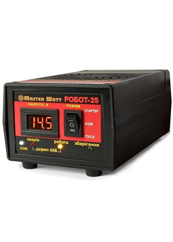 Управляется микроконтроллером, автоматическая регулировка тока заряда, отдельные режимы заряда для всех типов свинцово-кислотных аккумуляторов: - гелевых (GEL), - AGM, - стартерных с жидким электролитом, в т.ч. кальциевых ("Ca"). Допустимая емкость аккумуляторов: 2 - 400 А*ч Интеллектуальный подбор зарядного тока - Безопасный заряд без отключения аккумулятора от бортовой сети - Функция десульфатации - Режим пуска двигателя - Многоступенчатый адаптивный алгоритм заряда, включая заряд импульсного тока - Автома составе систем бесперебойного питания – крайне простое в использовании Главной особенностью зарядного устройства "РАБОТ-25" является инновационная система интеллектуального подбора и установка зарядного тока на протяжении всего цикла заряда. Это освобождает пользователя от необходимости изучать характеристики аккумуляторов и исключает возможные ошибки при регулировке зарядного тока. "РАБОТ-25" сам регулирует зарядный ток в соответствии с реальной остаточной емкостью аккумулятора и его поведением в процессе зарядки. Вам достаточно просто выбрать режим и подключить аккумулятор любой емкости – от 2 А*ч до 400 А*ч! Зарядное устройство "РАБОТ-25" предназначено для заряда всех типов 12-вольтовых свинцово-кислотных аккумуляторных батарей (АКБ): - Стартерных (с жидким электролитом), в частности кальциевых, - AGM, - Гелевых (GEL), а также для восстановления (десульфатации) АКБ с жидким. Благодаря большой мощности и эффективному алгоритму заряда и десульфатации, РОБОТ-25 можно также использовать: - для пуска двигателей автомобилей; - для подзарядки и поддержания в оптимальном состоянии аккумуляторов, работающих в буферном режиме (например - в системах резервного питания) - для длительного хранения аккумуляторов Все режимы работы управляются микроконтроллером и автоматически адаптируются к каждой конкретной АКБ. Каждый режим включает в себя самодиагностику устройства, программы распознавания короткозамкнутых банок и перегрева АКБ, определение неправильного подключения. "РАБОТ-25" имеет небольшие габариты, вес и цену, при этом отвечая потребностям владельцев 12-вольтовых свинцово-кислотных аккумуляторов практически всех типов и емкостей. Благодаря этим качествам этот прибор выгодно отличается от отечественных и зарубежных аналогов. Основные технические характеристики: Напряжения питания, В 160 - 245 Частота питающего напряжения, Гц 50 - 60 Максимальная потребляемая мощность, Вт 360 Максимальный ток заряда, А 25 Емкость АКБ, А*ч 2- 400 Максимальное напряжение заряда, В: - Реж. 14.9 – Режим "стартер" 16.2 Виды защит: - от переполюсовки; - от короткого замыкания; - от высокого напряжения сети; - от перегрева Рабочая температура окружающей среды, °С -20 ... +35 Габариты Д*Ш*В, мм 190*95*70 Вес, г 800 Комплектация: зарядное устройство с питающим кабелем и кабелями подключения АКБ, инструкция. "РАБОТ-25" крайне прост в эксплуатации - нужно выбрать только тип аккумулятора, об остальном "РАБОТ" позаботится сам. Помимо основных режимов заряда, в "РАБОТ-25" реализован алгоритм для работы в буферном режиме (например – в составе ИБП), при котором зарядное устройство круглосуточно следит за состоянием аккумулятора и в случае обнаружения понижения напряжения ниже порогового уровня осуществляет заряд аккумулятора. Этот режим включается автоматически после окончания основных режимов, так