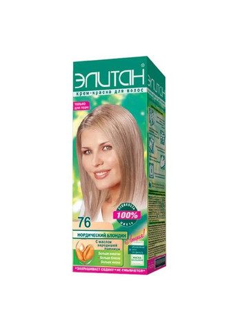 Краска для волос Elitan 76 Пшеничный блонд. Крем-краска для волос Elitan 76 Пшеничный блонд создана для получения тёплого, мягкого и благородного светло-золотистого оттенка с естественным сиянием. Формула равномерно окрашивает волосы по всей длине, надёжно закрашивает седину и обеспечивает стойкий результат, который долго сохраняет насыщенность цвета. Кремовая текстура деликатно обволакивает каждую волосину, защищая её структуру во время окрашивания. Масло зародышей пшеницы питает волосы, укрепляет, разглаживает и помогает восстановить повреждённые участки. Благодаря витаминам группы B уменьшается ломкость и поддерживается естественная эластичность, волосы становятся более мягкими и ухоженными. Активные пигменты глубоко проникают в структуру волос и создают изысканный тон «Пшеничный блонд» — тёплый, натуральный и очень нежный. После окрашивания волосы остаются шелковистыми, гладкими и сияющими. В комплекте: крем-краска – 2 саше х 25 мл, окислительная эмульсия – 2 саше х 25 мл, маска-бальзам – 1 саше х 15 мл, перчатки, инструкция. Мы работаем на рынке косметики больше 20 лет. Наша компания является эксклюзивным дистрибьютором ряда линеек товаров для окрашивания волос таких производителей: Комби (Нотатон, L'ERINI, Элита, Jee Cosmetics) Роза Импекс(SPA Master, Prestige, Galant, Leganza, Be extreme, Be blond, Be color, Blond Time, Herbal Time, Color Time) STS (Aquarelle) Schwarzkopf (Palette) Wella (WELLATON) Лореал (Garneir) Supermash (Флорекс, Blondex, Lokon) Acme color (Avena, Super Blond, jNOWA Acme-Professional) Triuga (Jharna, Triuga, Ayurveda) Khadi Имеем широкий ассортимент: красок для волос, тонирующих бальзамов, осветительных средств, аксессуаров для профессиональной покраски, окислителей, пудр, корректоров, средств для удаления краски из кожи, различные виды химической завивки и фиксажей, других профессиональных средств. Мы предлагаем товары с учетом изысканных вкусов и предпочтений как украинского так и европейского потребителя. Ассортимент товаров постоянно обновляется в русле тенденций мировой моды, инновационных идей и новых товаров, творчества и профессионализма. Краски для волос оптом, для продажи в магазинах косметики, удовлетворят самого взыскательного потребителя! Краски и средства для парикмахерских и салонов красоты! Краски для покраски в домашних условиях. Мы организуем стабильные поставки товаров для окрашивания волос в кратчайшие сроки! Присоединяйтесь к нашей семье довольных клиентов!