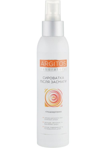 Процесс загара – это не только обретение красивого бронзового оттенка, но и возможность получить ожог, покраснение или чувство стянутости кожи. Чтобы предотвратить и защитить эпидермис от неприятных последствий воздействия солнечных лучей, используйте специальный лосьон после загара от Argitos. Средство с антибактериальным действием создано на основе наносеребра. Нежная консистенция и невесомое покрытие обеспечивают полный комфорт и легкость. Надежная защита от жжения и покраснения позволит наслаждаться каждой минутой, проведенной на пляже или в солярии. Особенности Argitos Body Lotion: - оказывает восстановительное и успокаивающее действие; - снимает красноту и другие симптомы солнечных ожогов; - гипоаллергенный; - не имеет запаха и цвета; - подходит для защиты кожи лица и тела; - увлажняет и смягчает; - обладает заживляющим и бактерицидным свойствами; - защищает от фотостарения; - удобный формат спрея.