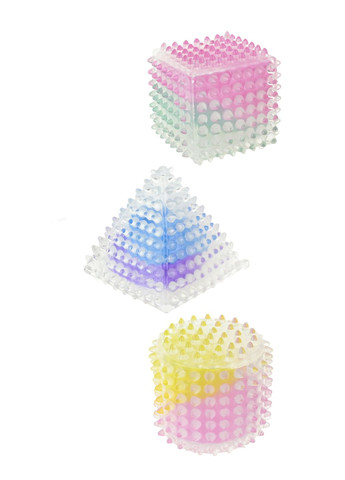 Антистресс Геометрические фигуры с жемчугом - Творчество и Релаксация! Откройте для себя уникальную антистресс игрушку - геометрические фигуры с жемчугом! Эта серия игрушек от Антистресс Арт. не только развлекает, но и помогает уменьшить стресс благодаря своему успокаивающему эффекту и возможности творческого самовыражения. Каждая фигура изготовлена из мягкого, эластичного материала, внутри которого находятся маленькие жемчужины, создающие приятный сенсорный опыт во время игры. Основные характеристики: Материал: Мягкий, эластичный материал с жемчугом внутри. Формы: Разнообразные геометрические фигуры, такие как кубы, сферы, пирамиды и т.д. Размер: Компактный, удобный для удержания в руках. Цвет: Прозрачный с цветными жемчужинами внутри, что добавляет визуальную привлекательность. Особенности: Сенсорный опыт: Жемчуг внутри фигур обеспечивает уникальный тактильный опыт, способствующий расслаблению и уменьшению стресса. Растяжение и деформация: Фигуры можно растягивать и менять их форму, что добавляет игре дополнительной интерактивности. После отпускания они возвращаются к своей первоначальной форме. Творчество: Возможность комбинировать различные фигуры для создания новых форм стимулирует творческое мышление. Безопасность: Изготовлены из безопасных материалов, идеальны для детей и взрослых. Преимущества: Антистресс эффект: Помогает уменьшить стресс и напряжение, подходит для людей любого возраста. Развитие: Способствует развитию мелкой моторики, координации, сенсорных навыков и творческого мышления у детей. Универсальность: Благодаря разнообразию форм, игрушки могут использоваться для различных видов игры и упражнений. Антистресс Геометрические фигуры с жемчугом - это не просто игрушки, это инструмент для релаксации и творчества, который обеспечит часы увлекательного времени игры, одновременно способствуя расслаблению и развитию! Данный товар представлен в ассортименте. Цена указана за 1 антистресс игрушку. Страна производитель: Китай.