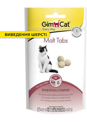 Таблетки GimCat ГимКэт Эври Дэй Мальт Табс – это кормовая добавка для дополнения ежедневного рациона котов витаминами D3, Е. Таблетки содержат ароматный экстракт солода, кору вяза и важные питательные вещества, способствующие естественному выведению комочков шерсти из желудка. Кора вяза оказывает противовоспалительное и успокаивающее действие на слизистую желудка. Преимущества и особенности: Содержит ароматный солодовый экстракт С корой вяза и важными питательными веществами. Состав: молоко и молочные продукты, дрожжи, растительные масла и жиры, производные растительного происхождения (сухой солодовый экстракт 4%, молотая кора вяза 2%). Аналитический состав: сырой протеин – 22,0%, жиры – 12,0%, сырая клетчатка – 14,0%, сырая зола – 6,0%, влажность – 5,0%. Добавки на 1 кг: витамин D3 – 1147 МЕ, витамин E – 260 мг. Не содержит сахара. Без ГМО.