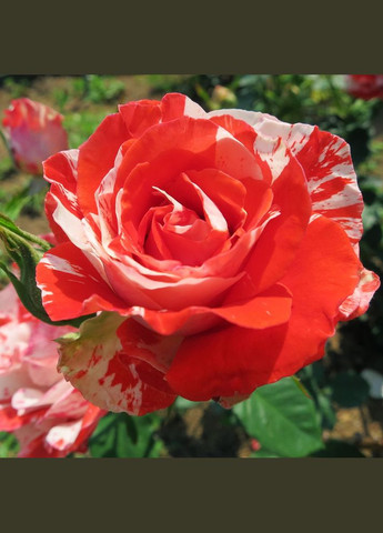 Чайно-гибридная роза Оранж Интуишн — сорт, имеющий яркие цветки с уникальной окраской, где красные и оранжевые оттенки смешиваются в виде полос и рисунков на лепестках. Цветы махровые, крупные, с приятным легким ароматом. Сорт отличается высокой устойчивостью к болезням и обильным повторным цветением в течение сезона. Преимущества чайно-гибридной розы Оранж Интуишн: Необычная полосатая окраска лепестков; Обильное повторное цветение в течение всего сезона; Легкий, приятный аромат; Высокая декоративность как в саду, так и в срезке; Устойчивость к неблагоприятным погодным условиям; Прямостоячий, компактный куст; Крупные, махровые цветы; Устойчивость к заболеваниям; Хорошо сохраняет свежесть в срезанном виде; Подходит для создания ярких цветочных композиций. Селекция чайно-гибридной розы Оранж Интуишн Сорт выведен во Франции, основной целью селекции было создание ярких декоративных цветов с полосатым рисунком, устойчивых к заболеваниям и неблагоприятным условиям. Основная информация о сорте чайно-гибридной розы Оранж Интуишн Основная особенность чайно-гибридной розы Оранж Интуишн: уникальная полосатая окраска, которая привлекает внимание и добавляет декоративности. Высота взрослого куста чайно-гибридной розы Оранж Интуишн: 1-1,2 м. Форма куста чайно-гибридной розы Оранж Интуишн: прямостоячий, компактный куст с глянцевой, темно-зеленой листвой, шириной до 0,6 м. Место посадки саженцев чайно-гибридной розы Оранж Интуишн: лучше всего растет на солнечных или слегка затененных участках, защищенных от сильных ветров, с хорошо дренированной, плодородной почвой. Схема посадки саженцев чайно-гибридной розы Оранж Интуишн: 50х60 см, 60х90 см. Размер посадочной ямы для саженцев чайно-гибридной розы Оранж Интуишн: должен быть достаточным для размещения корневой системы растений — 50х50х50 см. Начало цветения после посадки чайно-гибридной розы Оранж Интуишн: на 1 год. Опыление чайно-гибридной розы Оранж Интуишн: не нуждается в опылителях. Период цветения чайно-гибридной розы Оранж Интуишн: в период с июня по октябрь. Цветы чайно-гибридной розы Оранж Интуишн: крупные, махровые, до 10 см в диаметре. Лепестки имеют яркий красно-оранжевый цвет с неповторимым полосатым рисунком. Аромат легкий, цитрусовый, приятный. На одном стебле формируется один цветок, бутоны плотные, удлиненной формы. Морозостойкость чайно-гибридной розы Оранж Интуишн: средняя устойчивость, нуждается в укрытии на зиму в регионах с сильными морозами. Засухоустойчивость чайно-гибридной розы Оранж Интуишн: сорт относительно устойчив к засухе, но требует регулярного полива для обеспечения длительного цветения. Иммунитет к болезням чайно-гибридной розы Оранж Интуишн: высокий, хорошо переносит общие болезни роз благодаря крепкому иммунитету. Рекомендации при посадке саженцев чайно-гибридной розы Оранж Интуишн Выберите хорошо освещенное место, которое получает не менее 6 часов прямого солнечного света в день и защищено от сильных ветров; Обеспечьте хорошо дренированную, плодородную почву; Выкопайте яму размером 50x50x50 см, чтобы корневая система имела достаточно пространства для развития; На дно ямы положите дренажный слой из гравия или битого кирпича, затем добавьте компост или перегной для улучшения плодородия почвы; Поместите саженец в яму, расправив корни, и засыпьте его п