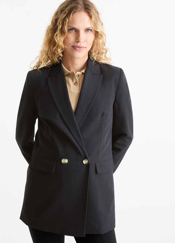 Цвет Черный / Фасон Двубортный / Стиль Деловой, Кэжуал / Сезонность Демисезон / Узор Однотонный
