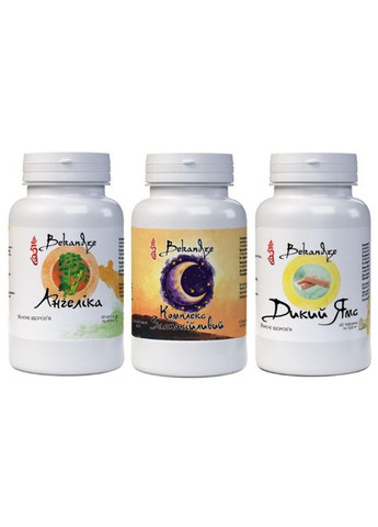 Комплекс для применения в период климакса BEKANDZE предназначен для улучшения сна и восстановления гормональной и нервной систем. Он создан на основе опыта врачей по отдельным готовым препаратам, которые специально подобраны для употребления в период климакса. Комплекс состоит из трех препаратов (отдельные баночки): Дикий ямс, Ангелика, Комплекс успокоительный. 1. Дикий ямс С помощью дикого ямса эндокринная система человека (особенно женский организм) активно начинает производить более двадцати разных гормонов, в том числе и половых. Экстракт растения оказывает благотворное влияние на организм женщины: оптимизирует гормональный уровень, регулирует менструальный цикл. Рекомендуется его употребление в период климакса, при приливах, для поддержания тонуса женских половых органов. Для женщин, желающих всегда быть энергичными, молодыми и здоровыми, а также для всех людей, заботящихся о своем здоровье, регулярное применение препарата оказывает положительное влияние на клиническую картину заболеваний. 2. Ангелика Ангелика, или Дудник китайский (лат. Angelica sinensis), является одним из самых эффективных средств для здоровья женщины. В Китае дудник называют "женским женьшенем", "женским растением" и "королевой китайских трав". Благодаря природным эстрогенам и витамину Е он нормализует гормональный фон, препятствует развитию остеопороза, убирает приливы, перепады настроения и другие отрицательные явления. Способствует нормализации функций центральной нервной системы при вегетативных неврозах, истериях, бессоннице. Снимает головную боль и успокаивает. Для органов дыхания оказывает спазмолитическое и противомикробное действие, эфирное масло уменьшает плотность и повышает текучесть слизи в легких и бронхиолах. Корни дудника китайского содержат следующие вещества, имеющие значение в медицине: фитоэстрогены, природные кумарины, в том числе, фурокумарины, феруловая кислота, эфирные масла (пинен, симен, Кампф, мерсен, лигустилид и др.), полисахариды, жирные кислоты, сесквитерпены, пектин, микроэлементы кальций, железо, магний, витамины А, E и В12. 3. Успокаивающий комплекс используют, если есть: нарушение сна, включая хроническую бессонницу функционального происхождения, неврастения и невротические реакции, сопровождающиеся раздражительностью, тревогой, страхом, усталостью, рассеянностью; стрессовые и тревожные состояния, раздражительность "синдром менеджера" (состояние постоянного психического напряжения); головная боль, обусловленная нервным напряжением; мигрени. Средство состоит из двух трав, воздействие которых на нервную систему невозможно переоценить: Хмель 200 мг. и пассифлора 200 мг. Противопоказания к применению - повышенная чувствительность к действующему веществу или вспомогательным компонентам; - выраженная артериальная гипотензия и брадикардия; - тяжелая сердечная, печеночная и почечная недостаточность; - беременность; кормление грудью; – возраст до 12 лет. Способ употребления и рекомендуемая доза: Терапевтическая и профилактическая доза: по 1 капсуле/таблетки каждого продукта 2 раза в сутки после еды. (3 капсулы в один прием). Лечебная доза: по 2 капсулы/таблетки 2 раза в день после еды (6 капсул за один прием). Предостережение: При беременности, кормлении грудью, приеме медицинских препаратов или наличия любых заболеваний сле