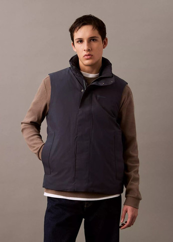 Мужская жилетка Calvin Klein с капюшоном. Стильный жилет из матовой гладкой ткани. Есть вшитый капюшон, который прячется в воротник-стойку с помощью молнии. Капюшон на утяжках. Воротник-стойка с дополнительным эластичным воротником в рубчик внутри. Застежка спереди на молнию и кнопки. Два кармана на молнии по бокам, два кармана внутри - на кнопке и на молнии. Логотип бренда спереди. Отличное качество. Машинная стирка.
