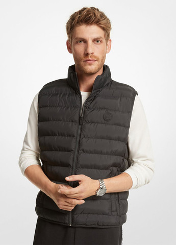Мужской водостойкий жилет Michael Kors. Стильная и очень удобная жилетка на молнии. Воротник-стойка. Имеет водостойкое покрытие. Два кармана на молнии по бокам и один внутри. Украшена прорезиненой нашивкой с логотипом бренда. Мягкая и приятная к телу ткань. Отличное качество.