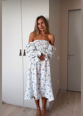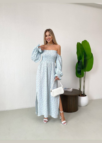 Материал Муслин / Цвет Голубой / Фасон С открытыми плечами / Длина изделия Макси / Стиль Повседневный