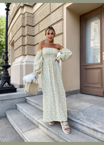 Материал Муслин / Цвет Желтый / Фасон С открытыми плечами / Длина изделия Макси / Стиль Повседневный