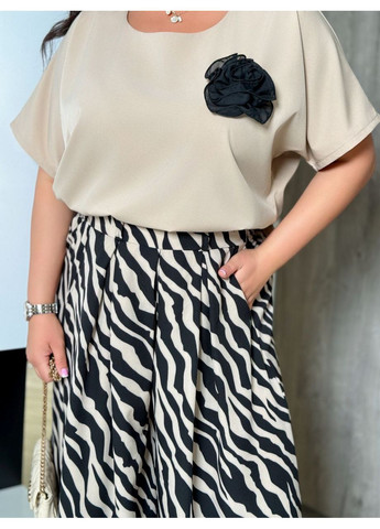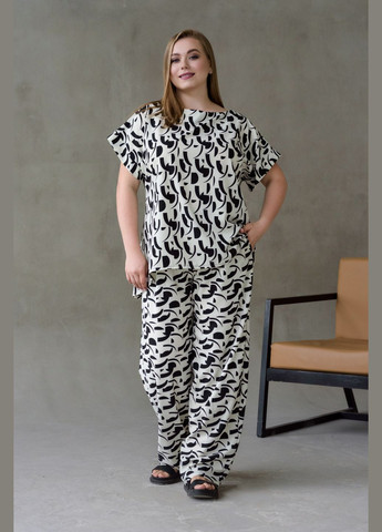 Этот стильный костюм, состоящий из блузки-футболки и брюк, станет идеальным выбором для вашего комфортного и модного летнего образа.