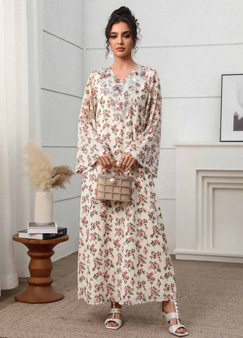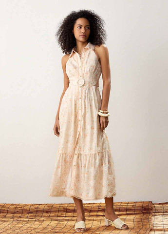 Цветочный принт не утрачивает своей актуальности и остается в тренде, придавая образу свежесть и игривость. Бежевый фон с цветочными мотивами превращает это стильное платье в настоящее произведение искусства.