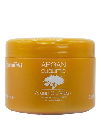 Argan Sublime Mask Маска с аргановым маслом – маска богатая питательным маслом Аргана, с нежным экзотическим ароматом и золотистой кремовой текстурой, специально разработанная для восстановления, придания объема, мягкости и блеска вашим волосам. Идеально подходит для всех типов волос. Инновационная формула маски: • Обогащенная маслом Аргана • Содержит золотые кристаллы Mica, создающие за счет своей многогранности тени, блики и отражения на волосах, придавая потрясающий эффект блеска. После применения Argan Oil Shampoo, на влажные волосы нанесите маску и проэмульгируйте по всей длине оставьте на 3-5 минут. Тщательно смойте.