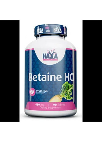 Бетаин - это вещество необходимо для лучшего поглощения белков, витамина В12, железа, кальция. Он также обладает выраженными желчегонными и гепатопротекторными свойствами. Betaine HCL Haya Labs – это продукт в виде удобных для проглатывания таблеток, который на 100% состоит из бетаина гидрохлорида. Бетаина гидрохлорид производят из сахарной свеклы. Главное действующее вещество данного препарата, оказывает гепатопротекторный, липолитический, пищеварительный ферментный и желчегонный эффект. Бетаин стимулирует образование и выведение желчи, активирует жировой обмен в печени, а также улучшает пищеварение. Кроме того, бетаин оказывает выраженное холекинетическое и холеретическое действие, способствуя снижению содержания жиров в гепатоцитах, нейтрализации токсичных веществ и улучшению работы печени. Бетаин довольно часто применяется в качестве вспомогательного вещества при лечении атероматоза, жирового гепатоза и умеренно выраженных гипертриглицеридемий. Наиболее положительный эффект данного препарата наблюдается при соблюдении определенной постоянной диеты. Преимущества 100% Betaine HCL от Haya Labs: Может помочь предотвратить вздутие живота: может уменьшить дискомфорт в желудке и предотвратить вздутие живота . Может поддерживать рост мышц: может улучшать синтез белка, что приводит к росту мышц. Мощный антиоксидант: гидрохлорид бетаина обладает сильными дезинтоксикационными свойствами. Стимулирует использование питательных веществ: участвует в выработке фермента пепсина. Рекомендуемое применение: Принимайте по 1 дозе 4 раза в день во время или после еды