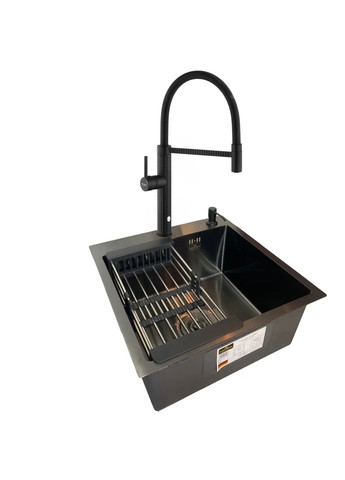 Магазин Santeh Misto рад представить для своих покупателей невероятное предложение - Комплект кухонной мойки Kroner Schwarze - 6350RHM PVD (3.0/1.0 мм) - полноценное решение для кухни высокого качества, идеально сочетающееся по цветам и материалам. Набор состоит из: кухонной мойки из нержавеющей стали смеситель встроенного диспенсера сифона, слив-перелива, корзиночного вентиля, сушилки. Покупка готового комплекта – это гораздо проще, быстрее и дешевле, чем покупать отдельно смеситель, мойку и дозатор. Это прежде всего: 1. Хороший дизайн и идеальная совместимость между мойкой и смесителем. 2. Экономия денег и времени. Кухонная мойка Kroner KRP Schwarze - 6350RHM PVD (3.0/1.0 мм) изготовлена из высококачественной нержавеющей стали пищевой марки, что позволит изделию прослужит долгие годы. Отменное качество и дизайн мойки позволят удовлетворить самые высокие требования и создать уют в вашем доме! Выпуск сифона изготовлен из нержавеющей стали с мусоросборником в форме ведерка и закрывается пробкой-крышкой, которую можно использовать при необходимости набрать воды в чашу. Мойка оборудована переливом для отвода води в экстренных случаях. Интегрированный способ монтажа позволяет устанавливать мойку в любом возможном варианте, классическом врезном - над столешней, интегрированом - мойка устанавливается в уровень со столешней, и монтаж под столешню. Характеристики Цвет Чёрный Материал Нержавеющая сталь Поверхность PVD Серия Schwarze Вид монтажа Интегрированный Высота изделия, мм 215 Глубина изделия, мм 500 Ширина изделия, мм 630 Ширина шкафа для монтажа, мм. 360 Гарантия 36 месяцев Страна-Производитель Польша Страна регистрации бренда Германия Комплектация Мойка, сифон, слив-перелив, корзинчатый вентиль, сушилка. Дополнительные характеристики Нержавеющая сталь SUS201. Есть отверствие для дозатора моющего средства. Вес брутто, кг 7,95 Вес нетто, кг 5,15 Модель Schwarze-6350RHMPVD Глубина, мм 500 Габарити пакування, мм 670х550х260 Тип изделия Кухонная мойка Размер основной чаши (ШхГхВ), мм 360х400х215 Толщина стали, мм 3/1 Высота изделия, мм 215 Глубина изделия, мм 500 Ширина изделия, мм 630 Количество чаш 1 Смеситель для кухни с подключением к фильтру Kroner KRP Edelstahl Klassisch - PVD03817BLK — это высокофункциональное и стильное санитарное устройство, предназначенное для обеспечения комфорта и удобства в вашей кухне. Этот смеситель имеет следующие ключевые характеристики: Модель предназначена для одновременного подключения к водопроводу и фильтру, обеспечивая возможность использования как обычной, так и питьевой воды. Это удобное решение для поддержания здорового образа жизни. Силиконовый излив обеспечивает удобство при мытье раковины и габаритной посуды, делая процесс более эффективным и комфортным. Надежная работа обеспечивается керамическим картриджем диаметром 35 мм и кран-буксой с углом поворота 90°, что упрощает регулировку потока воды и обеспечивает долгий срок эксплуатации. Смеситель оборудован удобными рукоятками для управления, что делает процесс регулировки потока воды более удобным и эргономичным. Аэраторы создают равномерную струю без брызг как для водопроводной воды, так и для питьевой воды, обеспечивая оптимальное пользование смесителем. Материал корпуса: нержавеющая сталь, обеспечивающая долгий срок службы и устойчивость к коррозии. Гарантия: 60 месяцев, что подчеркивает высокое качество и надежност