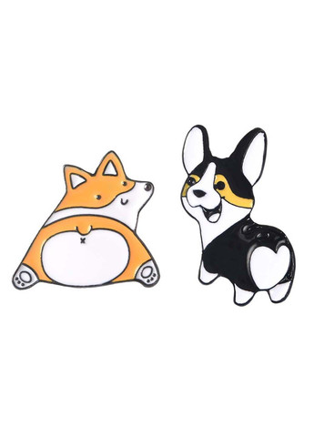 Изделие упаковано в прозрачный защитный пакетик, и к нему прилагается подарочный мешочек для хранения. Значки в комплекте: 2 шт. - оранжевый корги: 3,0 х 3,0 см (5,0 гр); - чёрный корги: 2,0 х 3,5 см (4,0 гр). Рекомендации по уходу за брошами: сохраняйте изделия в отдельном мешочке или шкатулке, подальше от солнечных лучей и влаги; не бросайте, не сгибайте, не растягивайте и не давите на изделие; избегайте контакта с духами, кремами и другими косметическими средствами; перед стиркой одежды обязательно снимайте с неё броши; не позволяйте детям или домашним животным играть с брошами - это опасно для их здоровья.