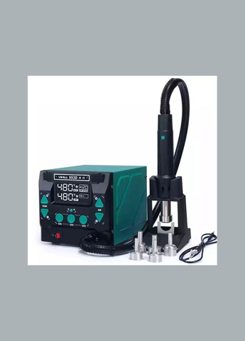 Термовоздушная паяльная станция YIHUA 993DM-IV фен / 1000 Вт / 100-500°С / 120 л/мин - профессиональная, термовоздушная паяльная станция термофен мощностью 1000 Вт от известной компании Yihua. Идеально подходит для монтажа демонтажа различных элементов BGA, SOIC, CHIP, QFP, PLCC. Большой цифровой дисплей, удобная регулировка температуры, три фиксированные настройки для выбора нужного режима, быстрая смена насадок. Эти преимущества позволяют значительно ускорить процесс работы. В конструкции предусмотрен современный бесщеточный вентилятор для создания мощного плавного потока горячего воздуха. Одной кнопкой можно быстро включить подачу холодного воздуха для быстрого охлаждения. Высокое качество изготовления, низкий уровень шума, стабильный воздушный поток, удобство использования, высокая энергоэффективность делают станцию оптимальным выбором для сервисных центров и любителей ремонта. Особенности: Быстрый нагрев, мощный и плавный поток горячего воздуха Керамический нагревательный элемент, бесщеточный вентилятор, плавная регулировка, большой радиус действия, низкий уровень шума, легко адаптируется под различные операции. Удобные быстрые настройки Возможность сохранения трех фиксированных настроек. Вы можете установить температуру и уровень потока воздуха отдельно для каждой настройки. Переключайтесь между нужными вам параметрами одним нажатием кнопки. Точная регулировка температуры На ярком LCD дисплее отображаются температура и объем воздушного потока в режиме реального времени. Возможность точной настройки с помощью кнопок на панели устройства. Быстрая смена насадок Конструкция сменных насадок без дополнительных винтов и креплений. Специальные клипсы позволяют моментально сменить насадку и продолжить начатую работу. Быстрое удобное управление термофеном Простое управление горячим потоком воздуха. Короткое нажатие для включения, выключения. Долгое нажатие для перехода в режим ожидания. Бесщеточный вихревой нагнетатель воздуха Турбинный нагнетатель воздуха изготовлен из современных надежных материалов, энергоэффективный, с низким уровнем шума. Удобная конструкция держателя термофена Специальный съемник на подставке термофена позволяет моментально снять насадку. Характеристики: Модель YIHUA 993DM-IV Тип Термовоздушная паяльная станция, турбинная Номинальное напряжение Переменный ток 220В ± 10% 50Гц Мощность 1000 Вт Диапазон температур 100 - 500 °С Поток воздуха 120 л/мин MAX Стабилизация температуры ±1 °С Тип вентилятора Бесщеточный Функция горячего/холодного потока Есть Функция памяти Три фиксированные настройки CH1 CH2 CH3 Калибровка температуры Есть Функция сигнала Есть Функция защиты Есть Условия эксплуатации 0~40℃ относительная влажность < 80% Размеры 200*164*156mm Термовоздушная паяльная станция YIHUA 993DM-IV фен / 1000 Вт / 100-500°С / 120 л/мин изготовлена из высококачественных материалов с тщательным контролем на всех этапах производства. Работай с удовольствием с профессиональным оборудованием!