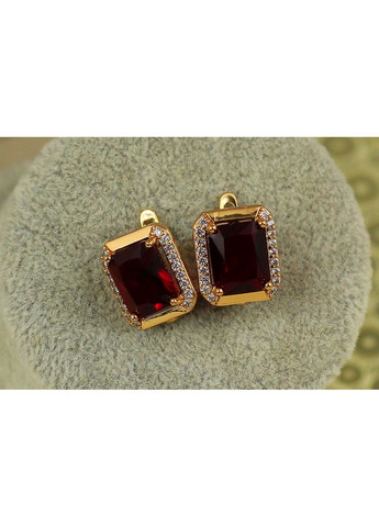 Серьги Xuping Jewelry Большой прямоугольник с красным камнем золотистые длина 1,4 см ширина 1,2 см застежка английская love-shopping