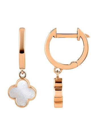 Женские золотые серьги Клевер с перламутром. Вставка - перламутр. Цвет камней - белый. Классические серьги - самая распространенная модель в ювелирном мире. Изысканный и стильный дизайн. Удобно надевать, застегивать и снимать. При этом они очень надежно крепятся.