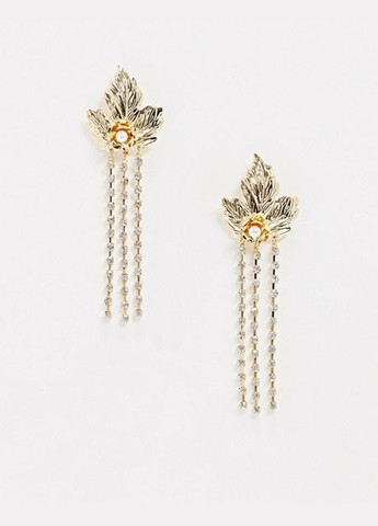 Длинные серьги золотистого цвета со стразами и жемчугом, застежка пуссет, а также дополнительная клипса. Длина 12 см.