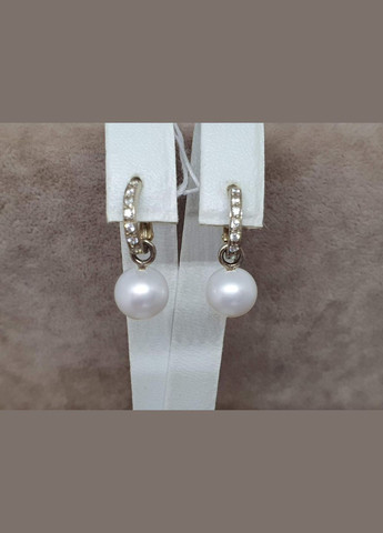 Серьги из лимонного золота 585 пробы с жемчугом и фианитами - 3,25 г Вес конкретного изделия уточняется при подтверждении заказа