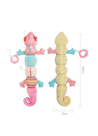 Мягкая погремушка C 64807 (55) “Хамелеон”, колокольчик, пискавка, шелестящие элементы, прорезыватель, ростомер, в пакете