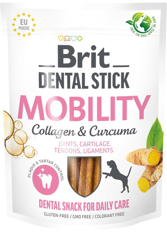 Снеки с коллагеном и курицей для ежедневного ухода за зубами собак. Заботятся о здоровье суставов, хрящей, сухожилий и связи любимцев. Brit Dental Stick специально созданные для ухода за зубами собак, эти функциональные лакомства идеально подходят для ежедневного потребления. Их структура разработана для механической чистки зубов, а гексаметафосфат натрия (SHMP) выполняет функцию зубной пасты. • Мята – антимикробные свойства и свежее дыхание • Коллаген – поддержка суставов, сухожилий и связок • Куркума – профилактика воспалений • Глюкозамин – хондропротектор, для подержания хрящей • SHMP – здоровье зубов, профилактика образования зубного камня • Без глютена, без ГМО, без красителей Состав: овсяная мука, глицерин растительного происхождения (14%), картофельный крахмал (10%), гидролизованные дрожжи (5%), лигноцеллюлоза (3%), патока (3%), коллаген (2%), сушеная куркума (2% ), глюкозамин (0.5%), сушеные микроводоросли (Schizochytrium sp., 0.5%), сушеная мята (0.5%), гексафосфат натрия (0.3%). Аналитический состав: сырой белок 10.5%, сырой жир 4%, сырая зола 2.5%, сырая клетчатка 4%, влажность 17%, кальций 0.1%, фосфор 0.2%, натрий 0.05%, омега-3, жирные кислоты 0.2%. Пищевые добавки на 1 кг: витамин C(3a312) 100 мг Энергетическая ценность: 3035 ккал/кг Рекомендации по кормлению: предлагайте 1 кусочек в день вашей собаке как угощение или награду Упаковка: 7 шт по 251 г