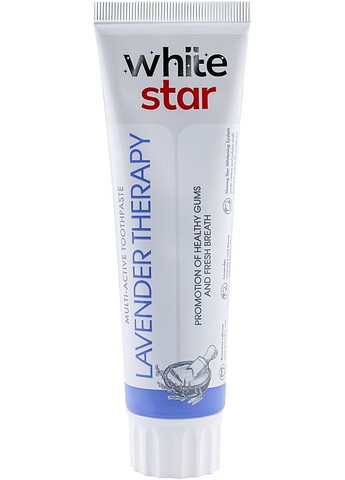 Компания Skystore представляет новинку – White Star Lavender Therapy, зубную пасту, которая обеспечивает мощную защиту от кариесогенных бактерий и эффективную профилактику заболеваний десен. Благодаря натуральным эфирным маслам лаванды, розмарина и инновационным компонентам паста помогает сохранять здоровье полости рта, снижает чувствительность зубов и придает свежесть дыханию. White Star Lavender Therapy – это идеальный выбор для ежедневного ухода за зубами и десной, особенно для тех, кто ищет натуральный продукт без фтора и вредных химических компонентов. Формула пасты разработана для комплексной антибактериальной защиты и снижения воспалительных процессов в полости рта. Основное предназначение и польза зубной пасты White Star Lavender Therapy: 1. Антибактериальная защита и профилактика заболеваний десен Благодаря цитрату цинка и эфирным маслам лаванды и розмарина, паста обеспечивает мощный антибактериальный эффект, предотвращает образование зубного камня и защищает десну от воспаления. Регулярное использование пасты помогает снизить риск развития гингивита, стоматита и других заболеваний десен. 2. Понижение чувствительности зубов и реминерализация эмали Паста содержит дикальций фосфат дигидрат, который помогает восстановить минеральный баланс зубной эмали и снизить ее чувствительность. Этот компонент проникает в микротрещины эмали и восполняет потери минералов, что помогает защитить зубы от внешних раздражителей. 3. Растительный фермент папаин, входящий в состав пасты, растворяет белковую основу зубного налета и способствует легкому освещению эмали. Это обеспечивает бережную очистку зубов даже в труднодоступных местах без риска повреждения эмали. 4. Защита от кариесогенных бактерий и антиоксидантное действие Комбинация активных масел растений и биосола обеспечивает антиоксидантный и противовоспалительный эффект, помогая поддерживать здоровье десен и сохранять свежесть дыхания в течение дня. Ключевые ингредиенты и их действие: 1. Цитрат цинка Эффективный компонент, который предотвращает образование зубного камня и снижает негативное влияние кислот на эмаль зубов. Цитрат цинка также помогает укрепить десну и уменьшить их кровоточивость. 2. Эфирное масло лаванды Известно своими антибактериальными и успокаивающими свойствами. Масло лаванды помогает бороться с бактериями, вызывающими воспаление десен и неприятный запах изо рта, а также способствует заживлению мелких повреждений в полости рта. 3. Эфирное масло розмарина Обладает сильным антисептическим действием, снижает воспаление и способствует профилактике заболеваний десен. Розмарин также придает пасте приятный освежающий аромат. 4. Дикальций фосфат дигидрат Этот минерал помогает снизить чувствительность зубов и способствует реминерализации эмали, восполняя потери минералов и укрепляя зубы. 5. Папаин Натуральный фермент, полученный из плодов папайи. Папаин растворяет белковые остатки зубного налета, помогая поддерживать чистоту зубов и защищая их от образования зубного камня. 6. Биосол Антибактериальный компонент, который помогает снизить количество бактерий в полости рта и поддерживает свежесть дыхания. Аромат и вкус: Зубная паста White Star Lavender Therapy обладает приятным ароматом и вкусом лаванды с легкими нотками розмарина. Она обеспечивает длительную свежесть дыхания и оста
