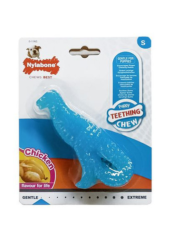 Игрушка Nylabone Dinosaur отлично подходит для периода, когда у щенков прорезаются зубы. Она удовлетворит естественную потребность вашего щенка грызть и жевать, облегчит его дискомфорт при прорезывании зубов. Игрушка рекомендуется для щенков малых пород весом до 11 кг с неагрессивным стилем грызения. Фигурка динозавра имеет специальную текстурированную поверхность с множеством бугорков и основу с крошечными щетинками, которые во время жевания игрушки собакой массируют десну и помогают уменьшить зуд, характерный в период смены зубов у щенков. Кроме того, это дополнительный уход за зубами: текстура способствует очищению зубов и предотвращает образование зубного налета и зубного камня. Рост зубов «заставит» щенка жевать и грызть все подряд, чаще всего то, чего он грызть не имеет. С помощью жевательной игрушки Nylabone Puppy Chew ДИНОЗАВР вы научите питомца жевать «правильные» предметы, что не только облегчит прорезывание зубов щенка, но и поможет воспитать взрослую собаку, обученную грызть игрушки, когда она испытывает в этом нужду, а не мебель и предметы гардероба. Игрушка Nylabone Dinosaur важна для психологического здоровья щенка: она займет питомца в ваше отсутствие, поможет избавиться от скуки, стресса и беспокойного состояния. Nylabone Dinosaur насыщена куриным ароматом, который усугубит привлекательность игрушки для вашего любимца. Стоит отметить, что вкус сохраняется, пока щенок будет грызть этого динозавра. Технология изготовления товаров Nylabone уникальна тем, что ароматизатор не распиливается поверхностью и не содержится только в покрытии, игрушка буквально пропитана им. Поэтому нет никаких шансов, что этот вкусный аромат впоследствии исчезнет, или собака его слижет. ВАЖНО! Nylabone Dinosaur – не лакомство! Игрушка не предназначена для еды! Почему стоит купить жевательную игрушку для щенков Nylabone Динозавр: облегчает процесс прорезывания зубов у щенков; предотвращает деструктивное грызение, развивая у любимца правильную привычку жевания игрушек, что защитит от уничтожения вашу мебель и обувь; уход за зубами: специальная текстура поверхности массирует десну, способствует очищению зубов и предотвращает образование зубного налета и зубного камня; помогает избавиться от скуки, стресса и занять собаку в ваше отсутствие; удобная форма: щенку комфортно хватать, переносить и содержать; одобрена ветеринарами; относится к серии Puppy Chew – только для щенков, не имеющих полного набора постоянных зубов; насыщенный вкус курицы усиливает привлекательность жевательной игрушки, аромат сохраняется в течение всего времени, пока ваш питомец ее будет грызть; контроль веса: жевание игрушки не влияет на нормы суточного рациона собаки; материал изготовления – нейлон; ароматизатор курицы не содержит ингредиентов животного происхождения, поэтому игрушка безопасна для щенков с аллергией на животный белок; легко содержать в чистоте – достаточно помыть теплой водой (аромат от этого не исчезнет). ингредиенты: нейлон, ароматизатор курицы, изготовленный без ингредиентов животного происхождения. ИНСТРУКЦИЯ Выбирайте жевательные игрушки Nylabone в зависимости от возраста, веса и интенсивности грызения вашей собаки. Если у вас несколько собак, выбирайте размер игрушки, подходящей для самого большого питомца, ориентируясь на самый интенсивный стиль грызения. Хвалите своего щен