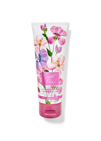 Крем для тела с маслом ши Bath and Body Works Ultra Shea Cream Sweet Pea – парфюмированный увлажняющий крем для тела. Роскошное масло ши обеспечивает глубокое 24-часовое увлажнение и питание даже для сухой кожи. Содержит успокаивающее масло алоэ и какао. Нежирная формула крема тает на коже, выделяя прекрасный аромат и обеспечивая бережный уход. Аромат: Яркая, молодежная смесь из сладкого горошка, груши и малины.