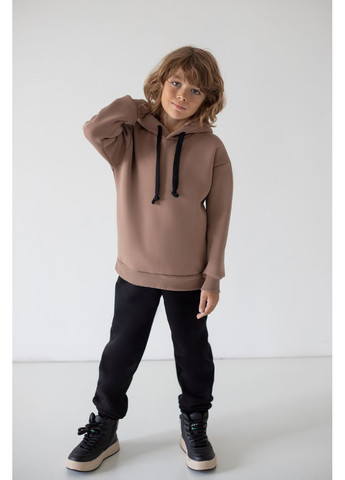 Базовий спортивний костюм для дівчак-підлітків з двониткового футера. Модель складається зі худі вільного покрою з довгими рукавами на манжетах, на манжетах по низу виробу, а також брюк з кишенями, пришивним поясом з широкою еластичною тасьмою і шнурком, низ штанів на гумці. Костюм підходить для повсякденного носіння, занять спортом, активного відпочинку. Полотно: двонитковий футер Склад: 80% бавовна, 17% поліестер, 3% еластан Рекомендації з догляду: прати при температурі не більше 30°C. Малюнок прасувати тільки з виворітної сторони.