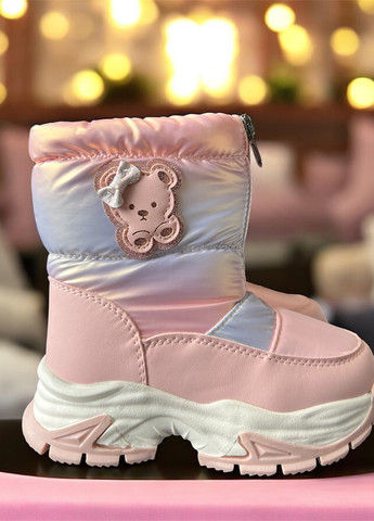 Колір Рожевий / Склад верха Штучна шкіра, Плащівка / Застібка Блискавка / Декор Гліттер, Аплікація, Біла підошва