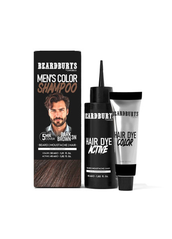 Опис Шампунь камуфлювальний для голови, бороди і вусів - Beardburys Color Shampoo Безпечне фарбування, яке освіжить образ і посилить натуральний колір волосся, можна зробити навіть у домашніх умовах. У цьому вам допоможе Color Shampoo бренда Beardburys. З його допомогою ви легко пофарбуєте волосся на голові, бороду і вуса. Шампунь рівномірно тонує пасма і камуфлює сивину, а також надає волоссю турботу і забезпечує повноцінний догляд. Ідеальний варіант, щоб освіжити образ і втамувати спрагу змін незначними перевтіленнями, які обійдуться без наслідків. Особливості Color Shampoo Beardburys: - палітра з 4 натуральних відтінків;- в упаковці міститься фарбувальний оксид, шампунь-проявник і одноразові рукавички;- є напівперманентним барвником;- ефективно очищає голову від надлишків себуму;- фарбує волосся всього за 15 хвилин, забезпечуючи тривалий ефект;- рівномірно змивається з кожним миттям голови;- формула не містить парабенів і аміаку;- легко наноситься і змивається;- надає волоссю здоровий блиск;- спрощує процес розчісування й укладання. Спосіб застосування Перелийте барвник у пляшку з оксидом. Закрийте і добре потрусіть. Використовуючи рукавички, нанесіть на волосся шампунь по всій довжині від коренів. Час очікування: 5 хвилин для отримання природного кольору чи 10 хвилин для більш інтенсивного. Після фарбування змийте водою без мила: продукт працює як шампунь. Склад Color Ingredients: Aq/water, Peg-4 Rapeseedamide, Cocamidopropyl Betaine, Ethanolamine, P-phenylenediamine, Oleth-4 Phosphate, Oleyl Phosphate, Oleic Acid, Propylene Glycol, Polyqternium-7, Cetearyl Alcohol, Ceteareth-25, Stearic Acid, Resorcinol, N,n-bis(2-hydroxyethyl)-p-phenylenediamine Carbomer, M-aminophenol, Parfum/fragrance, Linalool, Sulfate, Hydroxymethylpentyl 3-Cyclohexenecarboxaldehyde, Limonene, 2-Amino-4-Hydroxyethylamino Anisole Sulfate, P-Aminophenol, Sodium Hydrosulfite, Tetrasodium Edta, Thymus Vulgaris Extract, Aloe Barbadensis Extract, Ascorbic Acid. Activating Ingredients: Aq/water, Hydrogen Peroxide, Cetearyl Alcohol, Ceteareth-23, Sodium Lauryl Sulfate, Ceteareth-60, Carbomer, Pentasodium Pentetate, Etidronic Acid, Oxyquinoline Sulfate, Sodium Stannate, Disodium Pyrophosphate/Sodium Stannate.