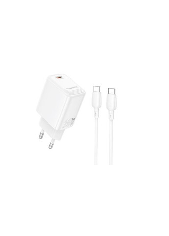 Мережевий зарядний пристрій BOROFONE BN26 Fuente single-port PD20W charger set (C to C) (EU) White– це зарядний пристрій із одним портом USB Type-C, у комплекті з кабелем Type-C to Type-C (C to C), розроблений для швидкої та безпечної зарядки пристроїв Apple та інших гаджетів із підтримкою Power Delivery (PD) до 20 W. ОСОБЛИВОСТІ Швидка зарядка для пристроїв із підтримкою PD, таких як iPhone, iPad, смартфони Android і багато інших. Компактний розмір, що робить зарядний пристрій ідеальним для поїздок. Сумісність із більшістю кабелів USB Type-C до Lightning або Type-C до Type-C. Захист від перегріву, перенапруги, перевантаження та короткого замикання для безпечного використання. ПЕРЕВАГИ Ефективна зарядка, яка економить час. Ергономічний дизайн, зручний для транспортування. Надійність і безпечна робота завдяки вбудованим системам захисту. Цей пристрій ідеально підходить для швидкої зарядки сучасних гаджетів вдома, в офісі чи під час подорожей.