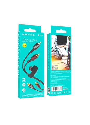 Кабель Аудіо Borofone BL13 dual RCA to dual RCA 1,5M (Чорний) – це ідеальний вибір для тих, хто шукає високоякісне аудіо з'єднання. Виготовлений із високоякісних компонентів, кабель забезпечує безшумний та чистий звуковий сигнал. Його довжина 1,5 метра дозволяє розміщувати аудіообладнання на відстані один від одного, що забезпечує зручніше розташування. Кабель має два роз'єми RCA з кожного боку, що дозволяє підключати його до будь-якого пристрою з такими самими роз'ємами. Також він має високу стійкість до зовнішніх впливів, що забезпечує тривалий термін експлуатації. Насолоджуйтесь чистим та чітким звуком з кабелем Audio Borofone BL13 dual RCA to dual RCA 1,5M (Чорний).