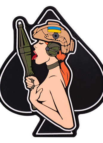 У часи Другої світової війни великої популярності набув стиль американскої культури Pin-Up. Відверті красуні з ефектним макіяжем, зачіскою та мінімалістичним вбранням, максимально підкреслюючим жіночність, прикрашали танки, літаки та снаряди американських солдатів. Навіть куртки пілотів були розписані дівчатами в образі Pretty Girls. Надихнувшись образами Pin-Up культури часів Другої світової війни, ми зробили власний ПВХ шеврон «Дівчина-піка», на якому красуня в касці посилає пристрасний «Привіт» окупантам, у вигляді бойового снаряда. Приваблива, харизматична та незалежна дівчина «Дівчина-піка» є уособленням краси, міцності й сили наших жінок на фронті та в тилу. До замовлення доступні шатенка, блондинка, руда та ПВХ патч «Дівчина-піка» в рожевому дизайні. Переваги наших шевронів: • Сучасний авторський дизайн. • Високоякісне ПВХ власного виробництва. • Не тріскається від перепадів температур. • Не має неприємного запаху. • Не вигорає на сонці. • Легко очищається від бруду. • Надійно кріпиться на одяг, спорядження, форму, сумки, рюкзаки, панелі за допомогою велкро липучки. Колір:кольоровий: 1.Довжина:7.5см; 2.Ширина 9см: 3.Вага:13.12г; 4. Матеріал:ПВХ:5.Липучка:Велкро зі зворотнього боку;6.Обьємний:Так;7;Прошивка по контуру:Так;