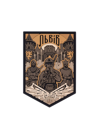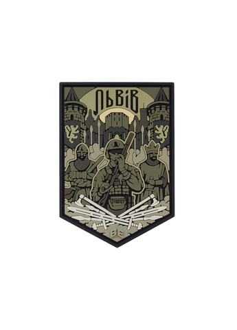 Патч відтворює велич і міць Львова — міста-оберега західних рубежів України. У центрі постає сучасний воїн, символ незламності та готовності боронити свободу. Його оточують постаті середньовічних лицарів, що перегукуються з героїчним минулим міста. Вежі та міська архітектура нагадують про історичну значимість Львова, а схрещені стріли акцентують на військовій доблесті. Цей патч — відзнака для тих, хто цінує свою історію та силу духу.