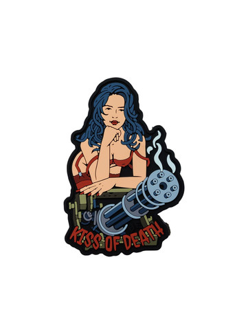 ПВХ Патч “Kiss of Death” – це граційне поєднання естетики pin-up та безжальної сили вогневої міці. Чарівна красуня з яскравими губами та загадковим поглядом спирається на розпечений багатоствольний кулемет, що ще мить тому сипав смертоносний свинець. Її поза – розслаблена, а посмішка – легка, адже вона знає: це був ідеальний постріл. Цей патч із серії pin-up символізує баланс між стилем і нищівною ефективністю, нагадуючи, що навіть у найсуворіших умовах можна зберігати грацію та впевненість.