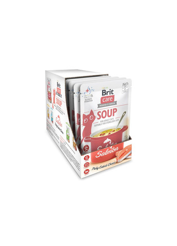 Повноцінний корм з лососем для кастрованих дорослих котів усіх порід. Без ГМО, без сої, без цукру Підтримка сечовивідних шляхів – суміш трав журавлини, кропиви, дев’ятисила безстеблого Цитрат калію, хлорид калію – регулювання значення pH сечі L-карнітин – контроль ваги Догляд за суглобами – глюкозамін, хондроїтин, МСМ Органічні мікроелементи Рекомендації з годування: щодо годування дієтичним кормом Brit VD проконсультуйтеся зі своїм ветеринаром - при поєднанні з сухим кормом Brit VD Cat Grain Free Sterilized відповідно зменшіть добову дозу. Варто подбати, щоб у Вашого кота завжди була свіжа питна вода. Склад: філе з 85% м’яса (65% куряче, 15% печінка, 5% лосось), гідролізована куряча печінка 7%, лігноцелюлоза 1,5%, горохове борошно, карбонат кальцію 0,3%, хлорид натрію 0,3%, хлорид калію 0,3%, цитрат калію 0,1%, сушена журавлина 0,07%, сушена кропива 0,04%, сушений дев’ятисил безстеблий 0,04 %, глюкозамін 0,024%, хондроїтин сульфат 0,02%, маннанолігосахариди 0,003%, фруктоолігосахариди 0,002%, юка Шидігера 0,002%, метилсульфонілметан 0,003%, інактивовані бактерії та їх частини (Lactobacillus helveticus HA – 122, 1,5x104 клітин/кг). Аналітичні компоненти: сирий протеїн 6,0 %, сирий жир 3,5 %, сира клітковина 0,5 %, сира зола 2,5 %, вологість 82,0 %, кальцій 0,2 %, фосфор 0,2 %, натрій 0,2 %, магній 0,03 %, калій 0,1 %, омега-3 жирні кислоти 0,1 %, омега-6 жирні кислоти 0,2 %. Харчові добавки на 1 кг: вітамін A (3a672a) 4200 МО вітамін D3 (3a671) 320 МО, вітамін E (3a700) 70 мг, вітамін C (3a312) 70 мг, L-карнітин (3a310) 80 мг, холіну хлорид (3a890) 1300 мг біотин (3a880) 0,15 мг, вітамін B1 (3a821) 1 мг, цинк (3b606) 18 мг, марганець (3b502) 7 мг, залізо (3b103) 14 мг, йод (3b201) 0,15 мг, мідь (3b406) 3 мг, селен (3b810) 0,03 мг, таурин (3a370) 820 мг, L-метіонін (3c305) 1750 мг. Енергетична цінність: 760 ккал/кг Вага кішки (кг) 2 4 6 10 Пакетів в день 2-3 3-4 4-5 5-7