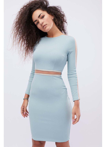 -Безкоштовна доставка зCarica блакитна сукня жіноча — виробництво УкраїнаКолір БлакитнийОблягаюча сукня довжини міді. Виріб має втачний рукав і застібається на таємну блискавку по спинці сукні. Прозорі вставк...